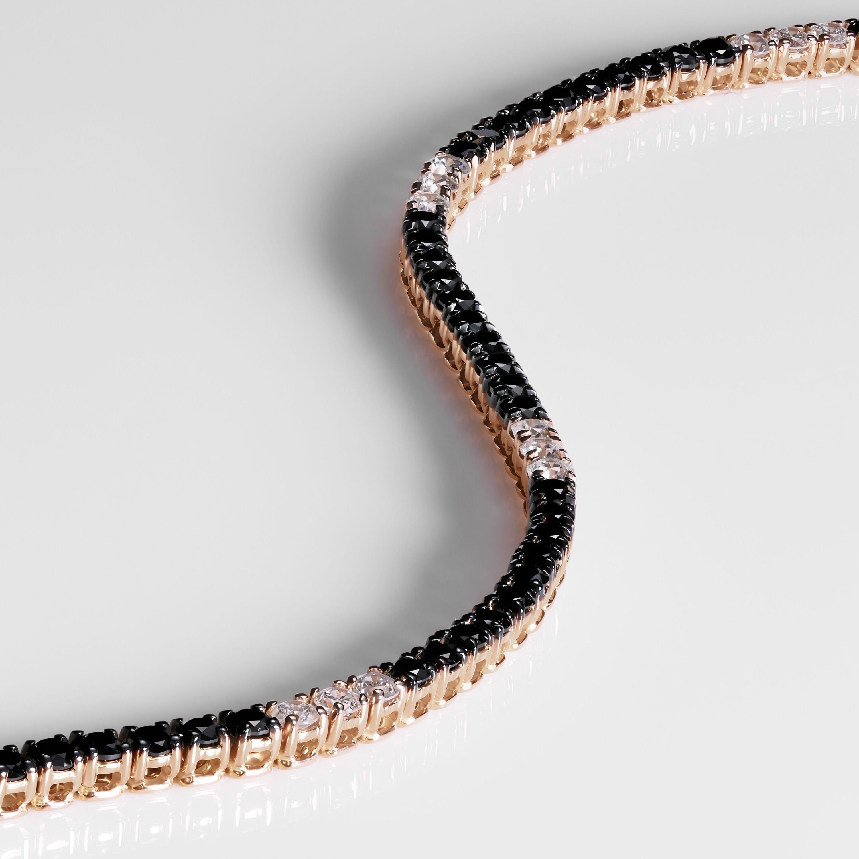 Золотой браслет 585 пробы, камни - бриллиант облагороженный черный огранка круглая 57 граней 7/6 - 70шт. вес 1.40 карата, бриллиант белый огранка круглая 57 граней 4/6 - 21шт. вес 0.44 карата