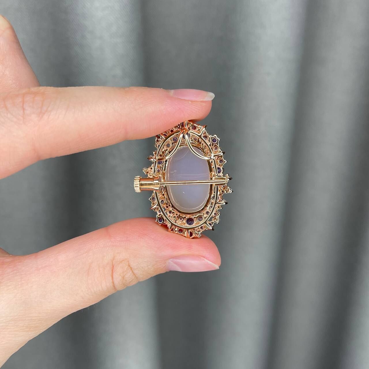 Брошь-подвеска из розового золота 585 пробы с кварцем, бриллиантами, сапфирами и аметистами