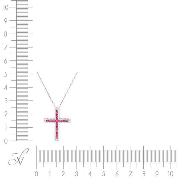 Колье из белого золота 585 пробы с рубинами и бриллиантами (45) (крест) код. 10440