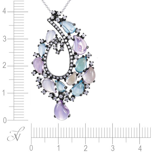 Колье из белого золота 585 пробы с цветными полудрагоценными камнями и бриллиантами (40)