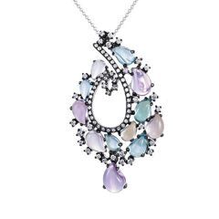 • Колье из белого золота 585 пробы с цветными полудрагоценными камнями и бриллиантами (40) код. 28240
