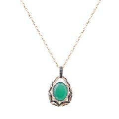 Золотое колье 585 пробы, камни - бриллиант огранка круглая 57 граней 3/5 - 64шт. вес 0.16 карата, бриллиант черный огранка круглая 57 граней 7/6 - 112шт. вес 1.11 карата, агат зеленый - 1шт. вес 11.20 карата