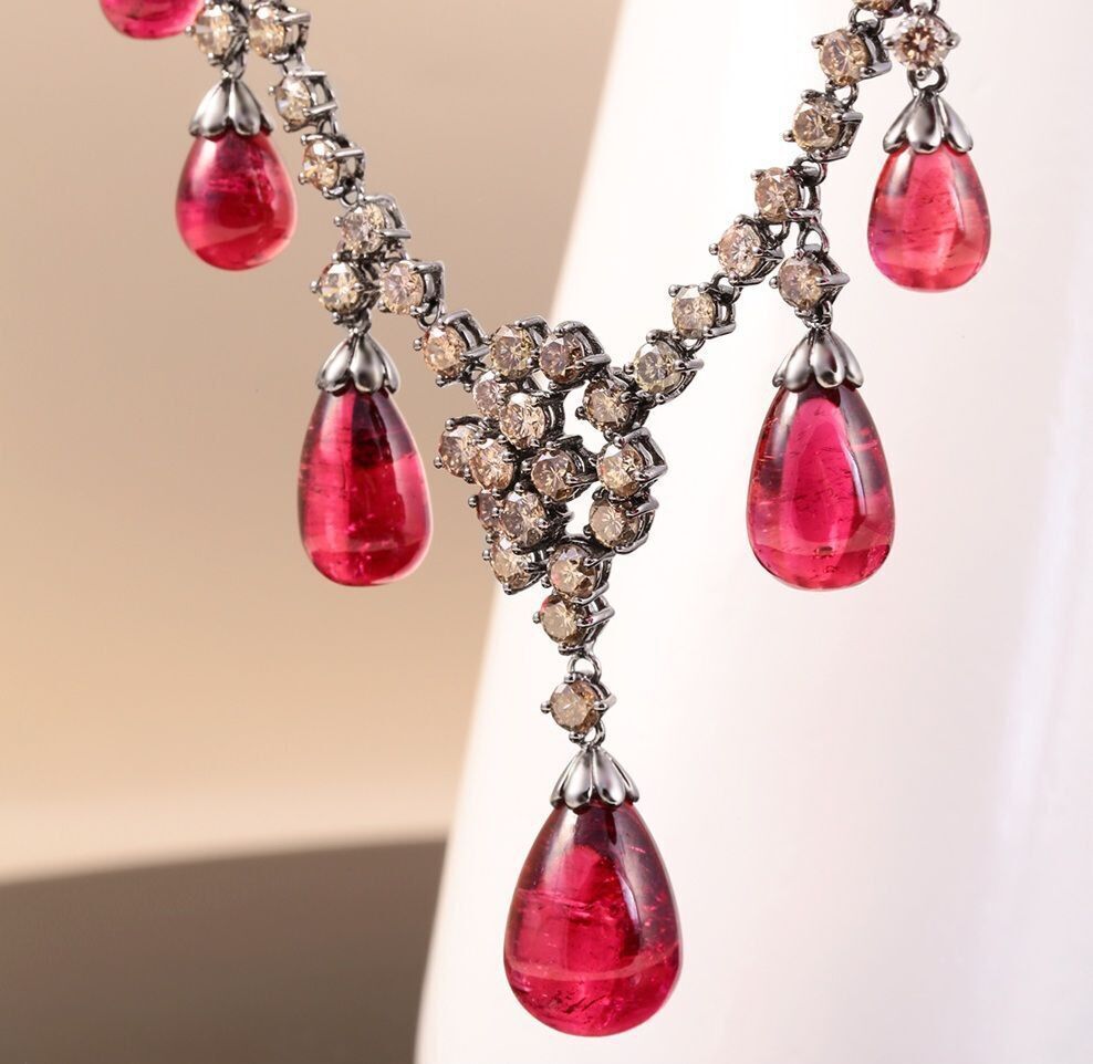 Колье из черного золота 750 пробы и белого золота 750 пробы с турмалинами и бриллиантами (50)