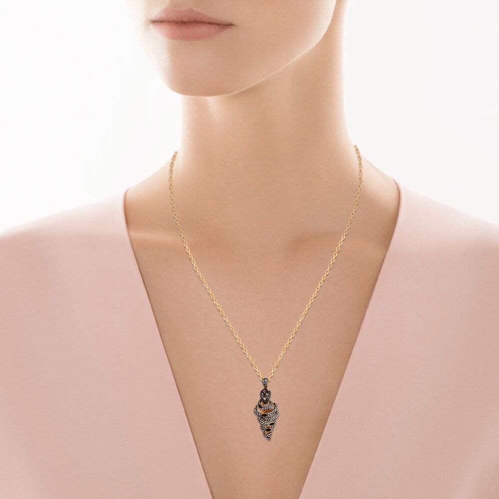 Колье из золота 585 пробы с бриллиантами, бриллиантами облагороженными, раухтопазом и ониксом (40)