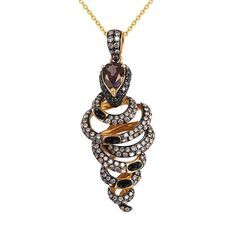 Золотое колье 585 пробы, камни - бриллиант коричневый огранка круглая 57 граней 6/6 - 147шт. вес 0.95 карата, бриллиант облагороженный черный огранка круглая 57 граней 7/6 - 50шт. вес 0.35 карата, раухтопаз - 1шт. вес 0.60 карата, оникс - 4шт. вес 0.25 карата
