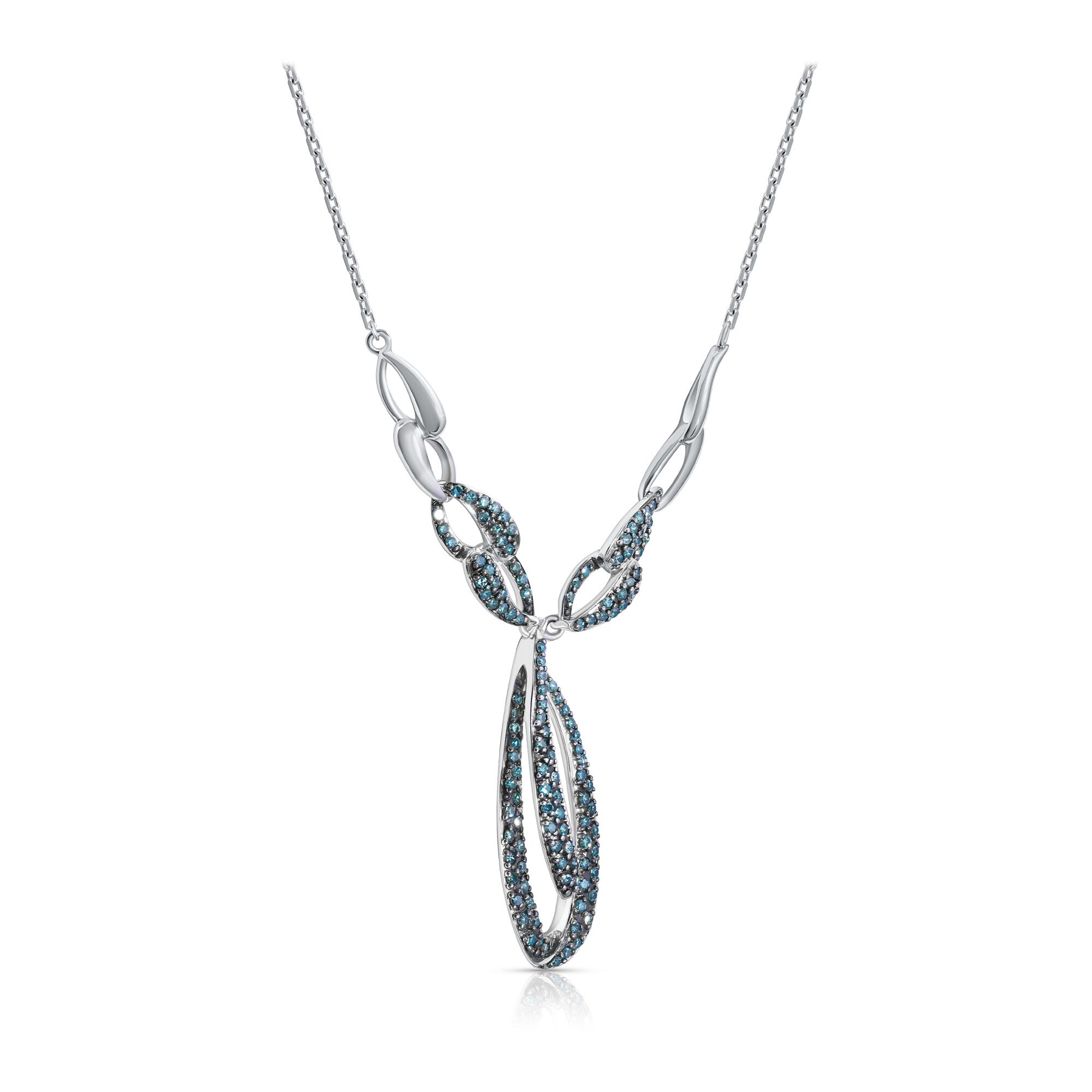 Золотое колье 585 пробы, камни - бриллиант голубой огранка круглая 17 граней 5/4 - 123шт. вес 0.77 карата