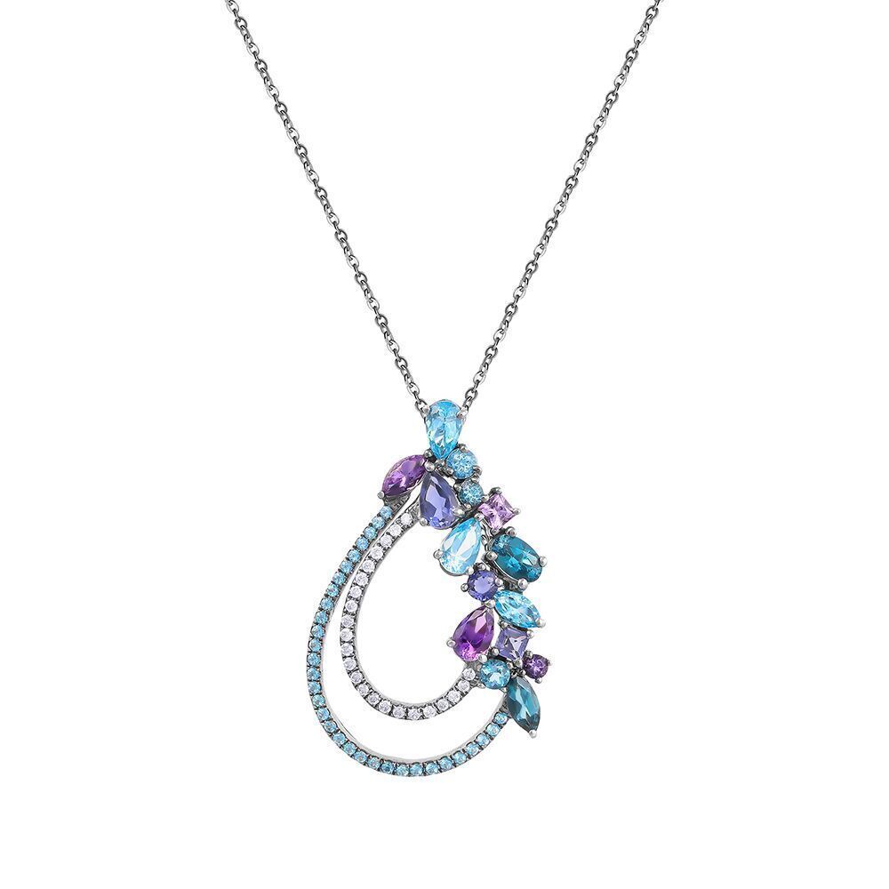 • Колье из черного золота 585 пробы с топазами, бриллиантами, иолитами и аметистами (45) код. 4476