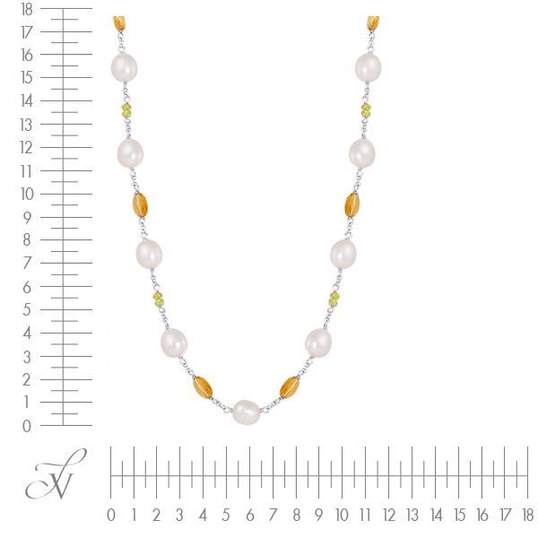 Колье из серебра 925 пробы с цитринами, перидотами и культивированным жемчугом код. 70520
