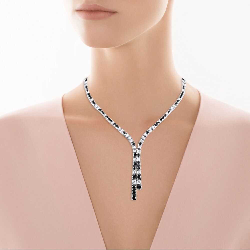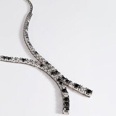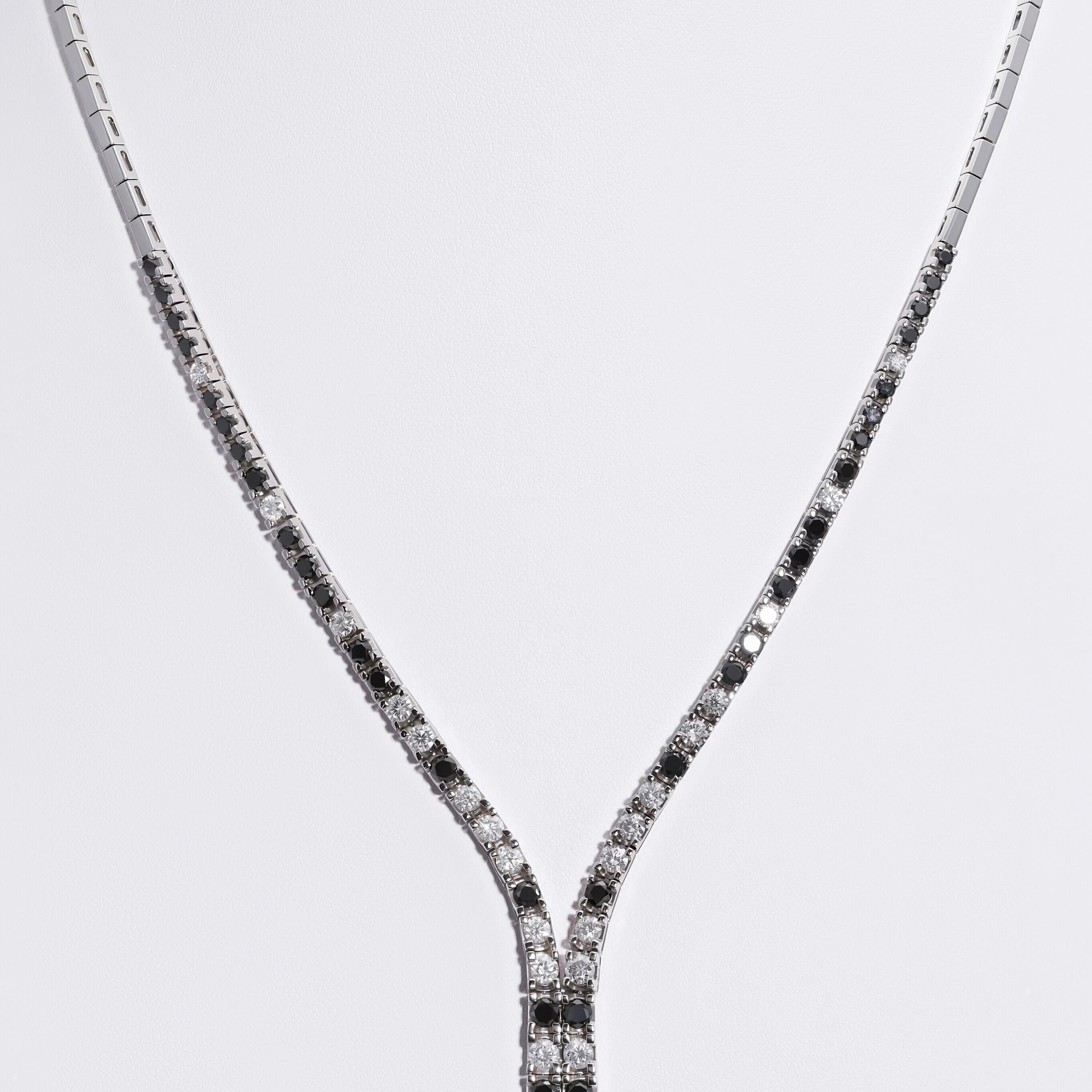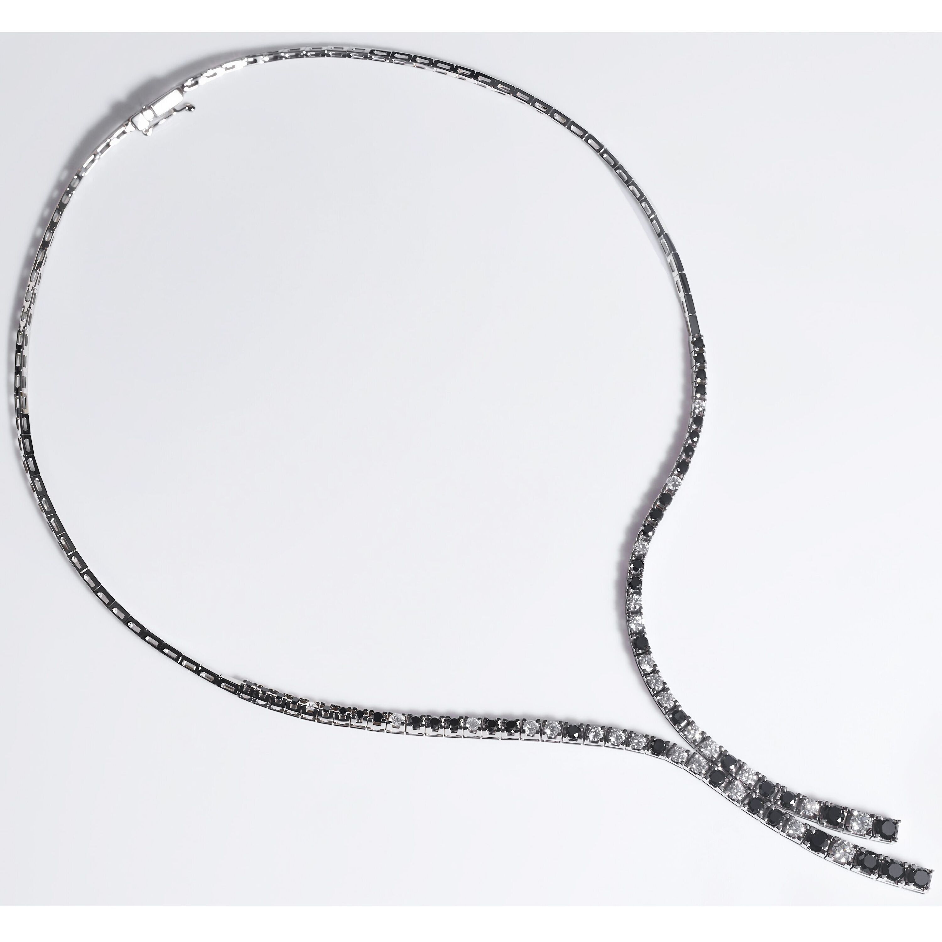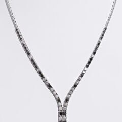 Золотое колье 585/750 пробы, камни - бриллиант огранка круглая 57 граней 3/6 - 2шт. вес 0.56 карата, бриллиант огранка круглая 57 граней 3/6 - 24шт. вес 2.02 карата, бриллиант черный огранка круглая 57 граней - 42шт. вес 4.45 карата