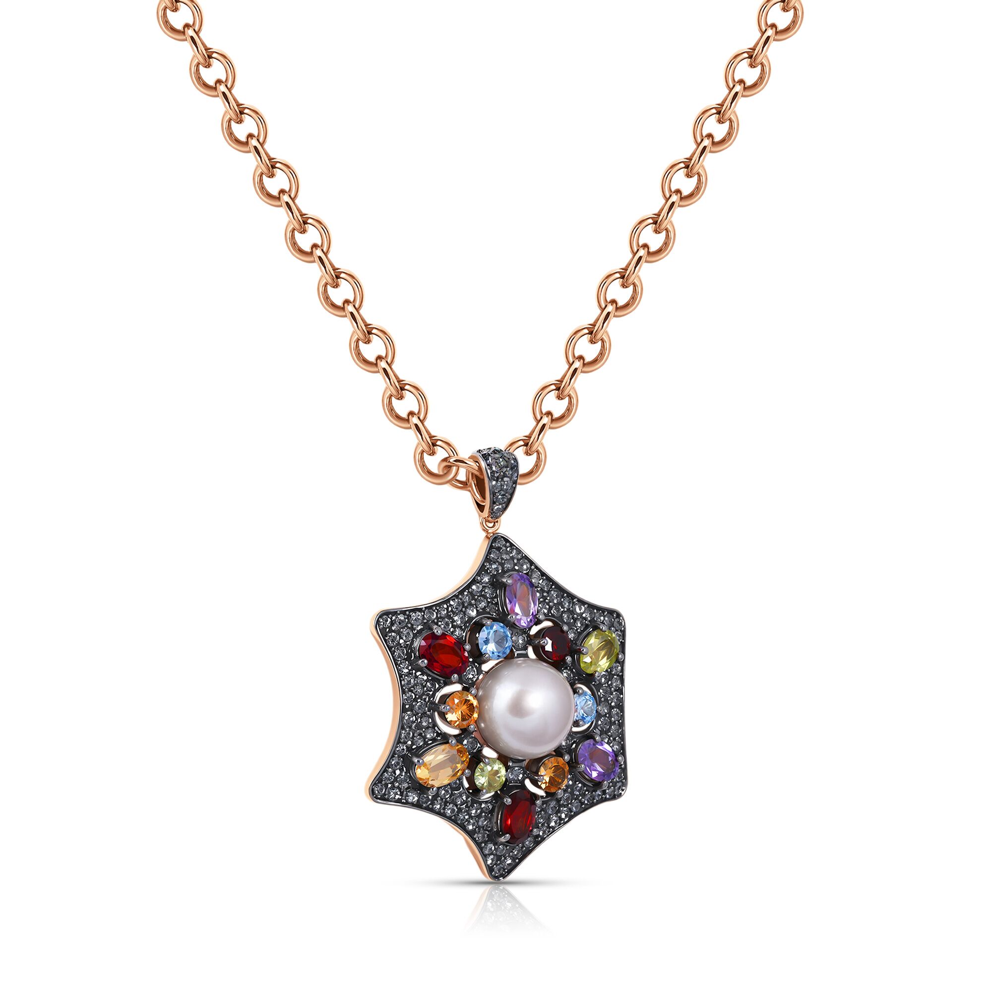 • Колье из серебра 925 пробы с гранатами выращенными, культивированным жемчугом, перидотами, топазами, цитринами, аметистами и фианитами (50) код. 8382