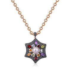 Колье из серебра 925 пробы с гранатами выращенными, культивированным жемчугом, перидотами, топазами, цитринами, аметистами и фианитами (50)