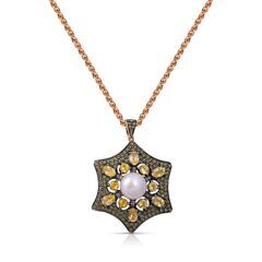 Колье из серебра 925 пробы с цитринами, культивированным жемчугом и фианитами (50)