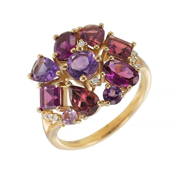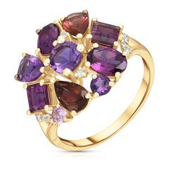 Кольцо из золота 585 пробы с бриллиантами, аметистами, топазами и турмалинами