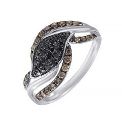 Золотое кольцо 585 пробы, камни - бриллиант облагороженный черный огранка круглая 57 граней 7/6 - 24шт. вес 0.30 карата, бриллиант коричневый огранка круглая 57 граней 7/6 - 26шт. вес 0.38 карата