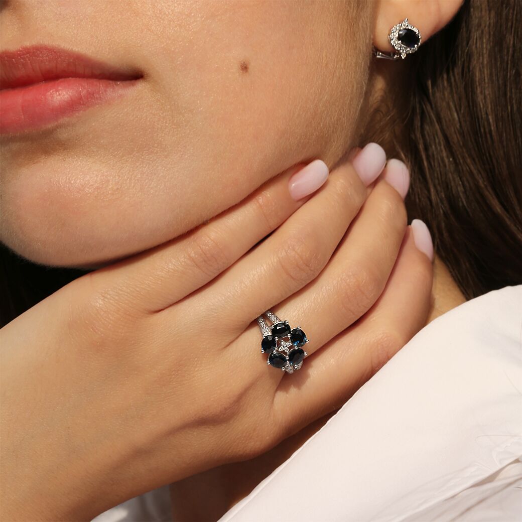 Кольцо из белого золота 585 пробы с бриллиантами и сапфирами