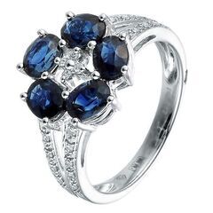 Кольцо из белого золота 585 пробы с бриллиантами и сапфирами (цветы) код. 10599