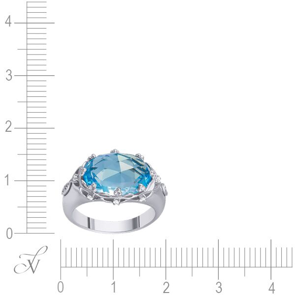 Кольцо из белого золота 585 пробы с бриллиантами и топазом код. 10784