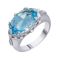 Кольцо из белого золота 585 пробы с бриллиантами и топазом
