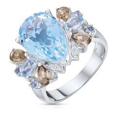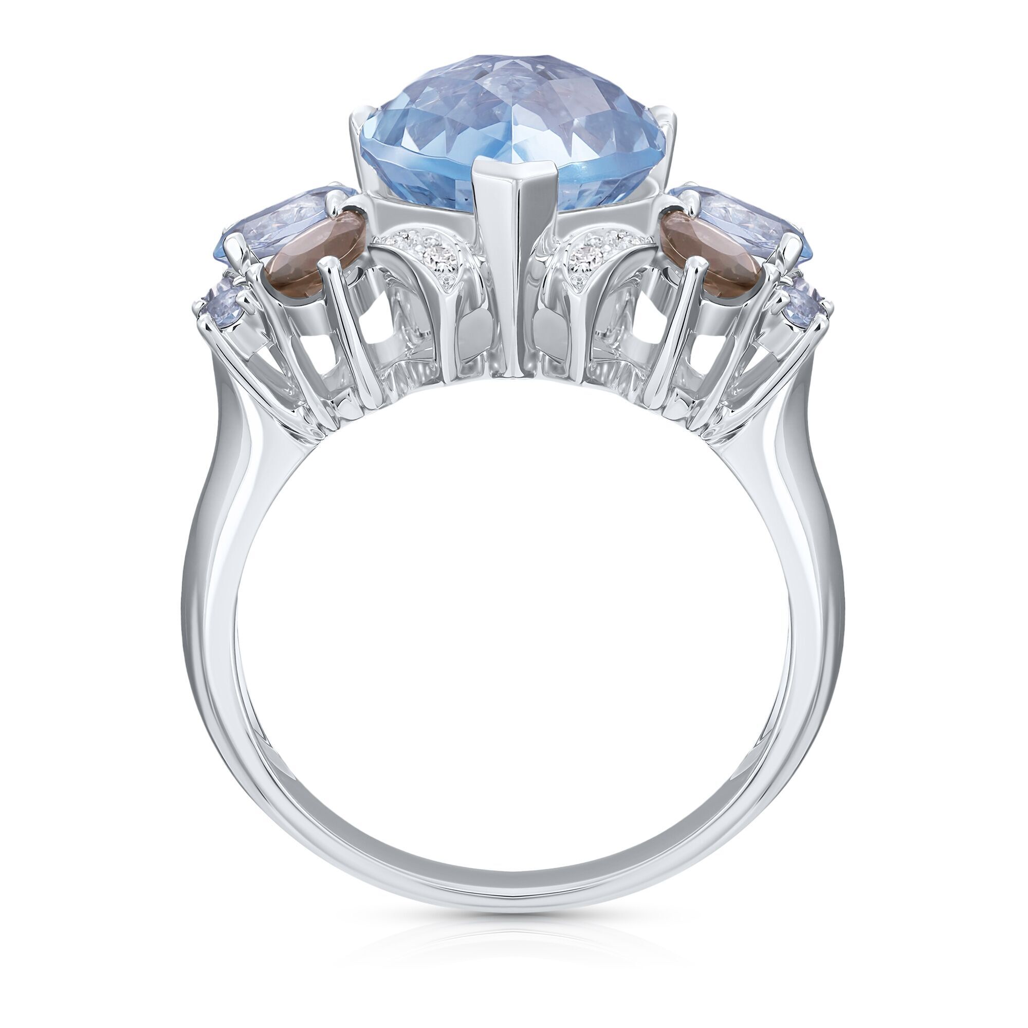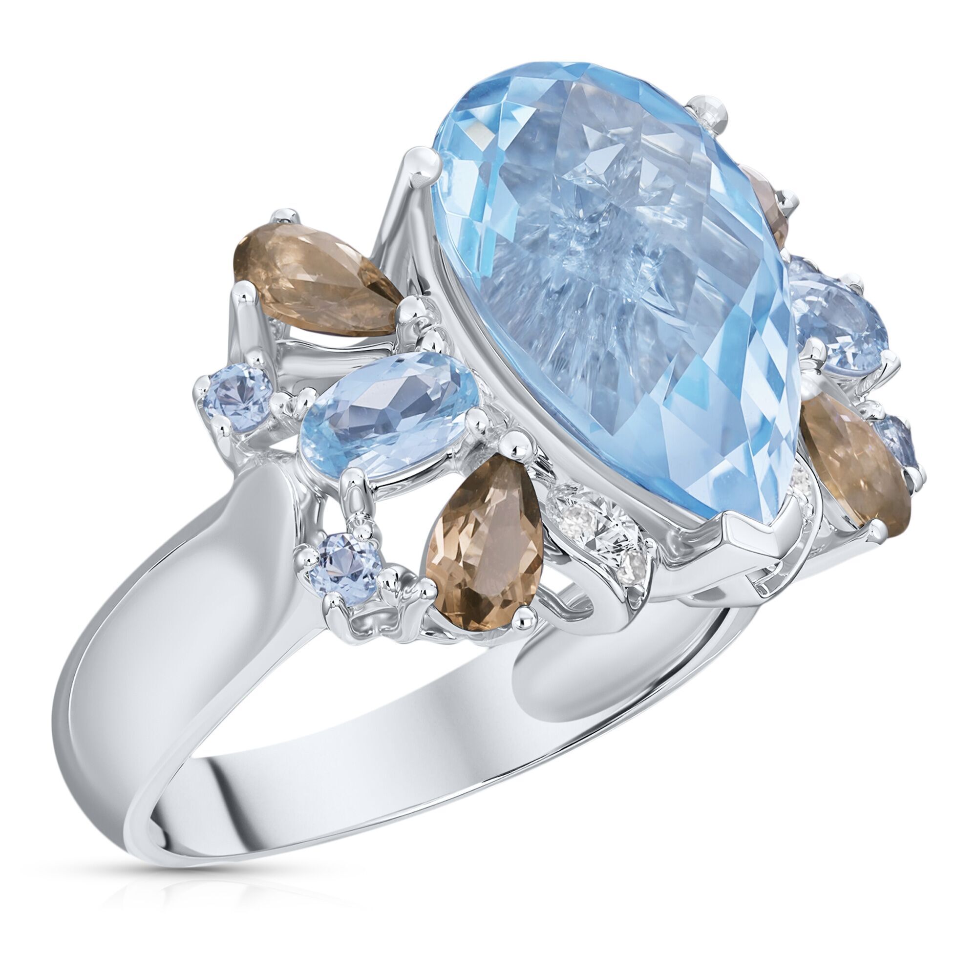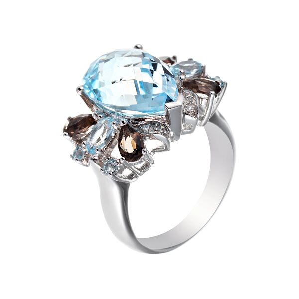 Кольцо из белого золота 585 пробы с бриллиантами, топазом и раухтопазами