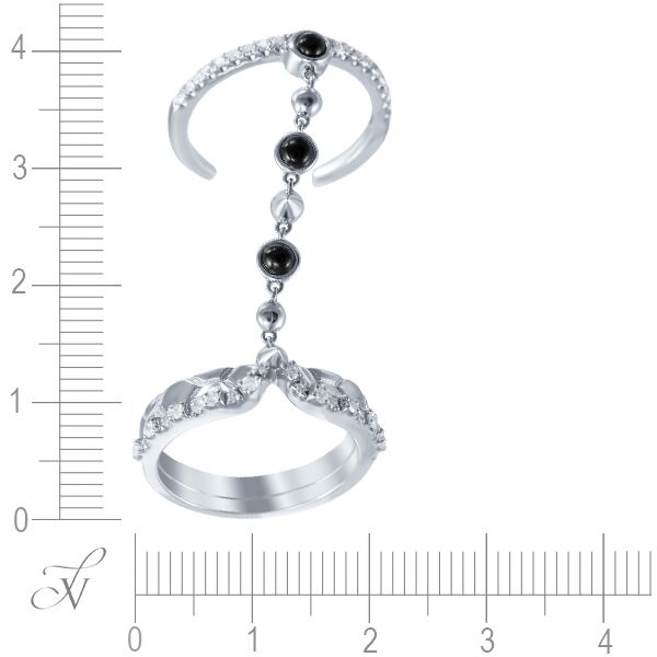 Кольцо из белого золота 585 пробы с ониксом и бриллиантами (17,5)
