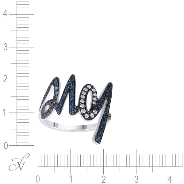 Кольцо из белого золота 585 пробы с бриллиантами и сапфирами (17,5) (love) код. 17198