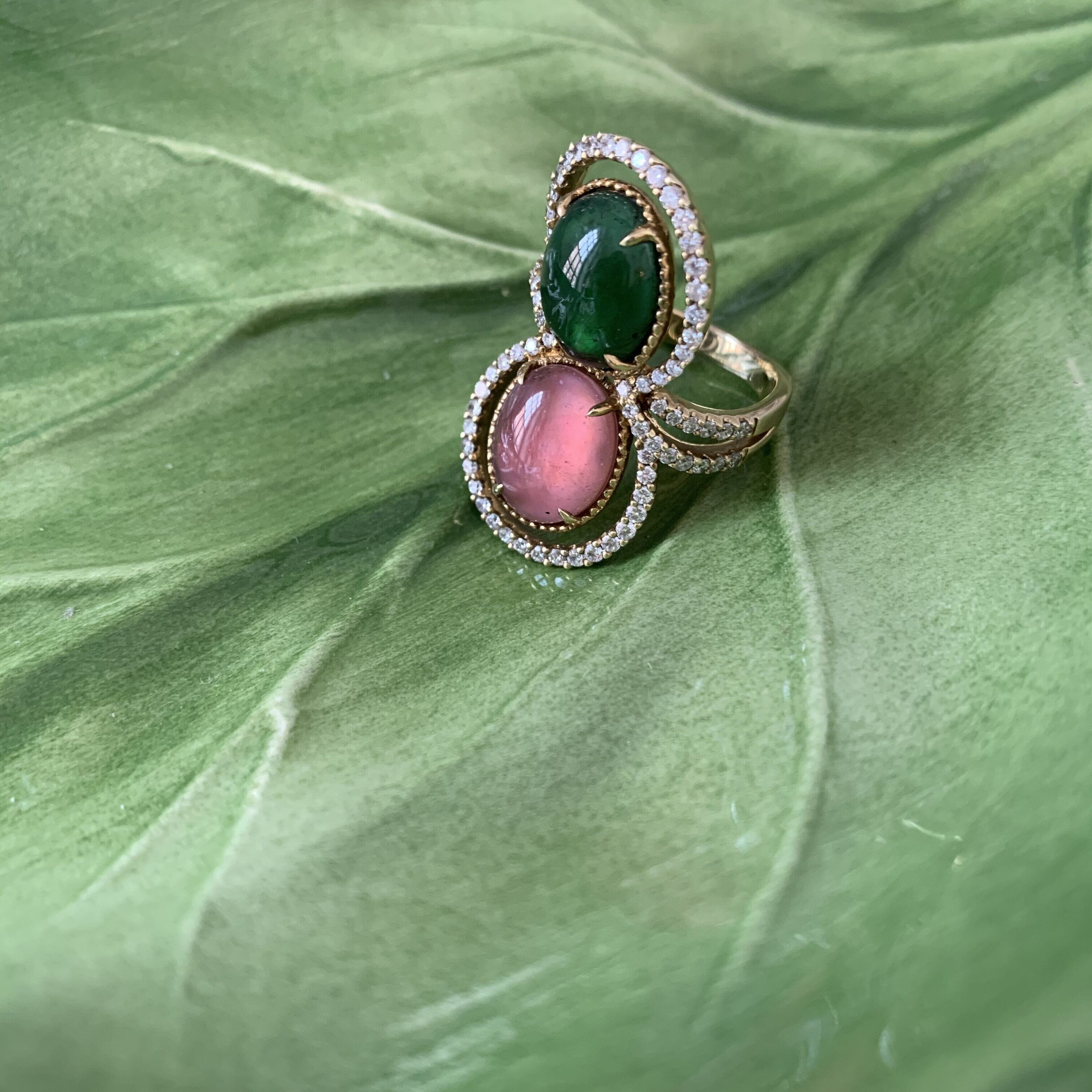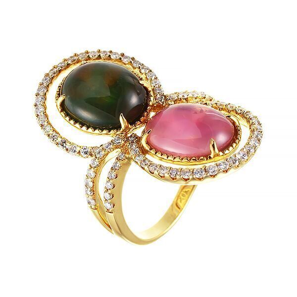 Кольцо из золота 585 пробы с турмалинами и бриллиантами (18)