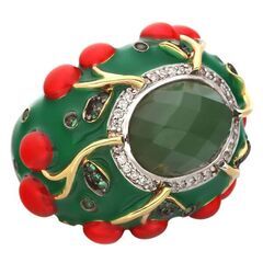 • Кольцо из золота 750 пробы с жадеитом, бриллиантами, цаворитами и эмалью (18) (ягоды) код. 25331