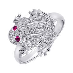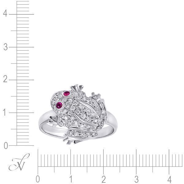 Кольцо из белого золота 750 пробы с рубинами и бриллиантами (18,5) (лягушка) код. 26007
