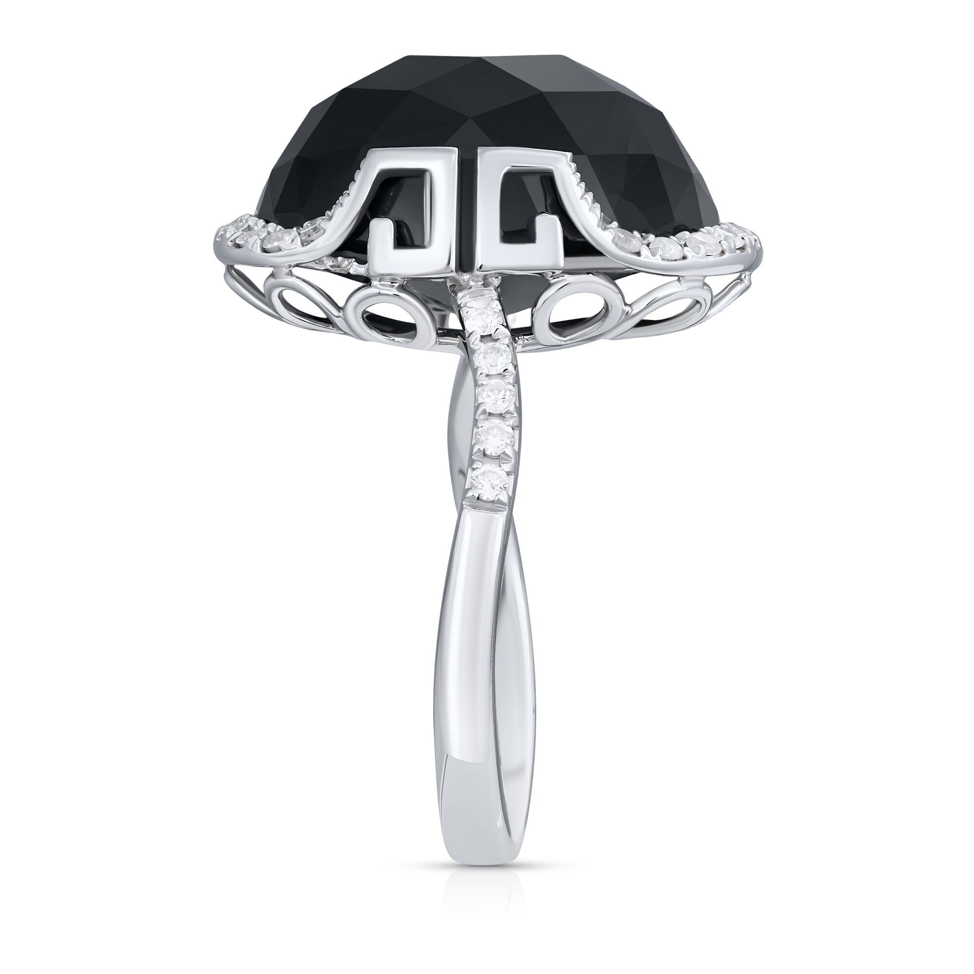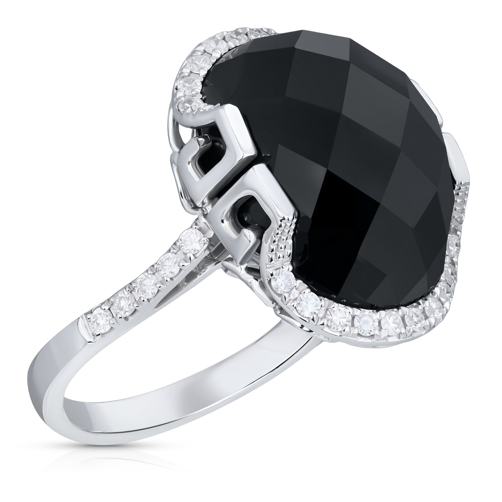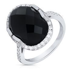 Кольцо из белого золота 585 пробы с ониксом и бриллиантами (17,5)