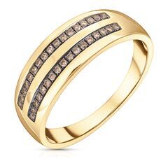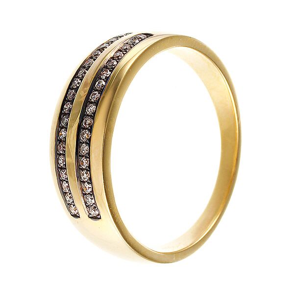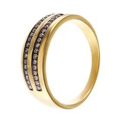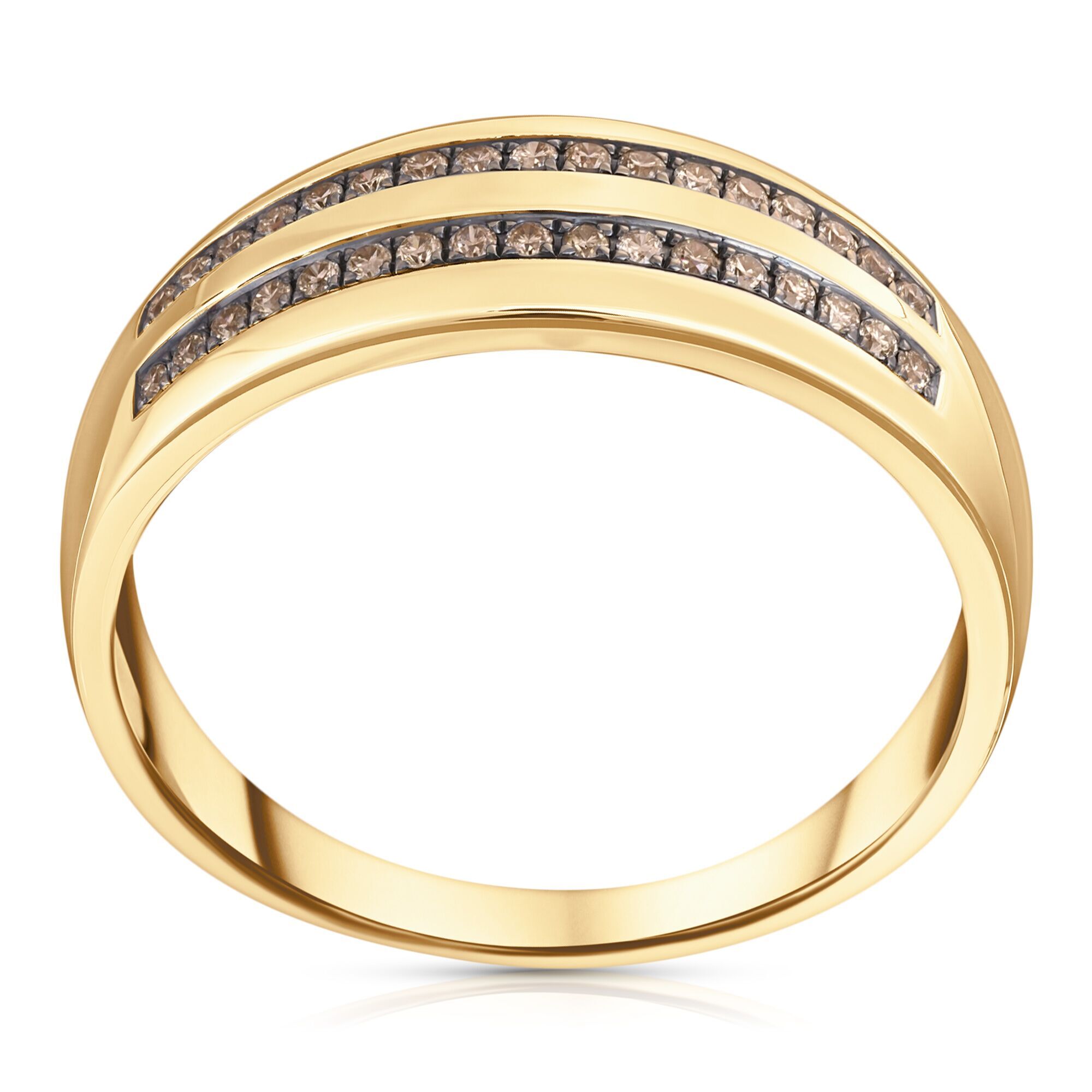 Золотое кольцо 585 пробы, камни - бриллиант коричневый огранка круглая 57 граней 7/6 - 34шт. вес 0.17 карата