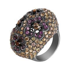 Золотое кольцо 750 пробы, камни - бриллиант цветной огранка круглая 57 граней - 186шт. вес 7.73 карата, бриллиант коричневый овал - 4шт. вес 0.59 карата, сапфир розовый - 60шт. вес 1.40 карата