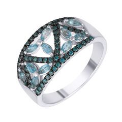 • Кольцо из белого золота 585 пробы с бриллиантами облагороженными и топазами (18) код. 27702