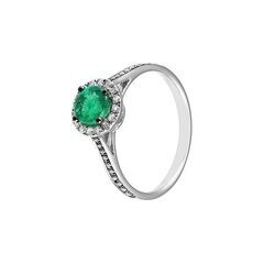 Кольцо из белого золота 585 пробы с бриллиантами и изумрудом