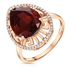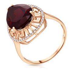 Кольцо из розового золота 585 пробы с гранатом и бриллиантами (17) код. 30368