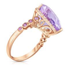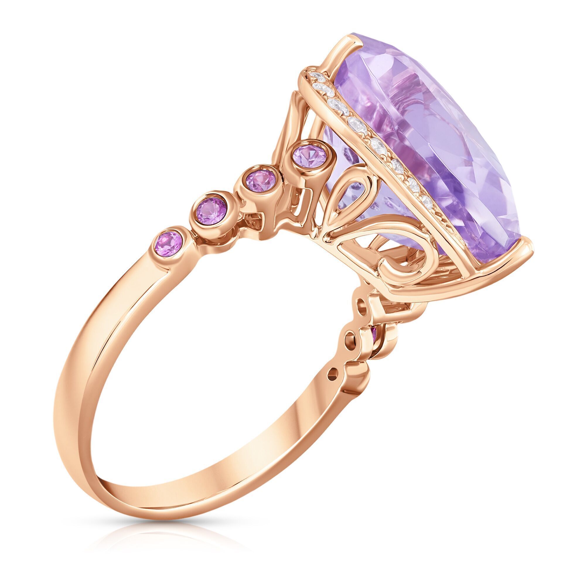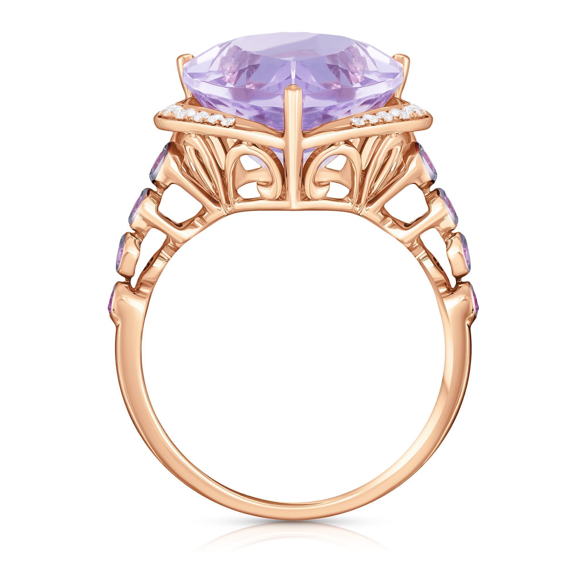 Кольцо из розового золота 585 пробы с аметистом, бриллиантами и сапфирами (18)