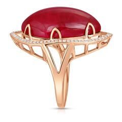 Золотое кольцо 585 пробы, камни - бриллиант огранка круглая 57 граней 3/6 - 62шт. вес 0.25 карата, рубин выращенный - 1шт. вес 30.03 карата