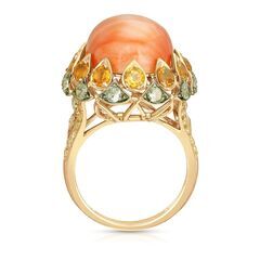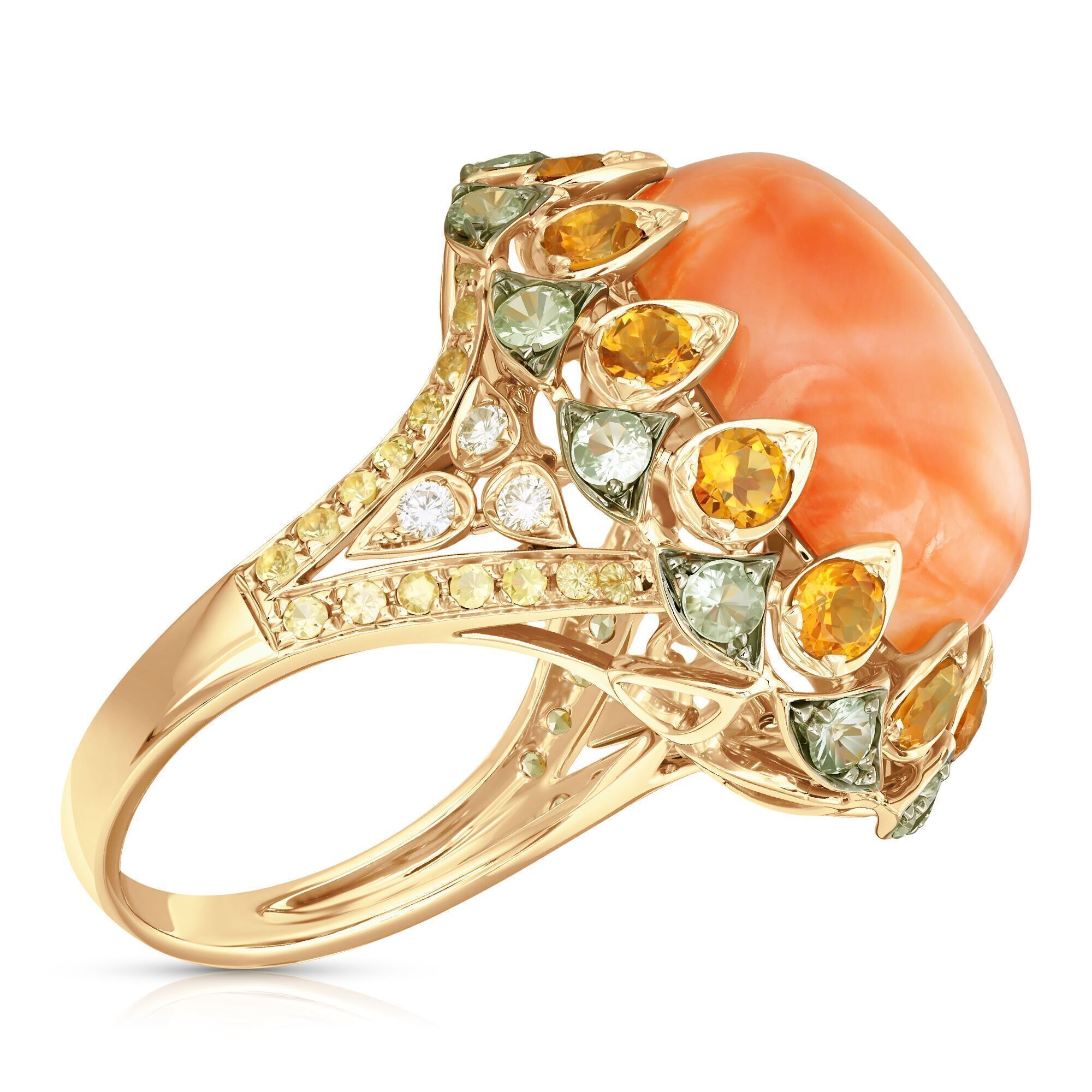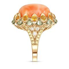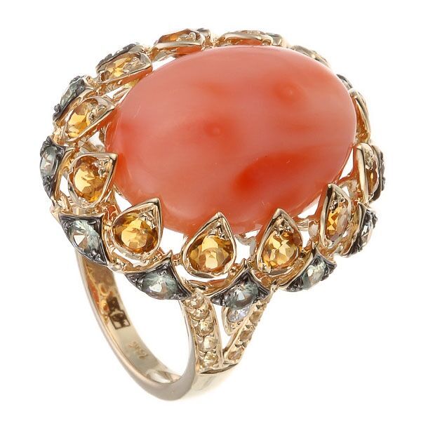 Кольцо из золота 585 пробы с кораллом, бриллиантами, сапфирами и цитринами (17)