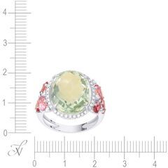 • Кольцо из белого золота 585 пробы с празиолитом, бриллиантами и турмалинами (17,5) код. 32259