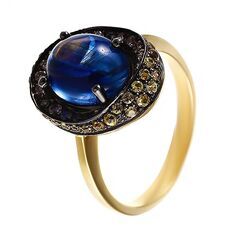 Кольцо из золота 585 пробы с кианитом, бриллиантами и сапфирами (17) код. 36105