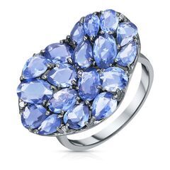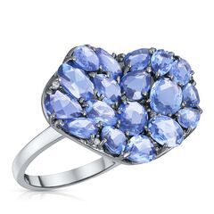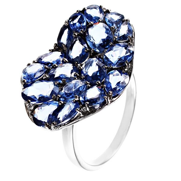 Кольцо из белого золота 750 пробы с бриллиантами и сапфирами (17,5)