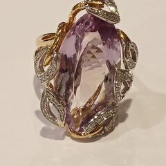 Золотое кольцо 750 пробы, камни - бриллиант огранка круглая 57 граней 4/5 - 49шт. вес 0.34 карата, аметист - 1шт. вес 16.79 карата