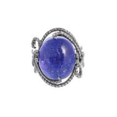 Кольцо из черного золота 750 пробы с танзанитом и бриллиантами (17,5) код. 50000088841