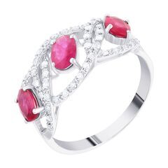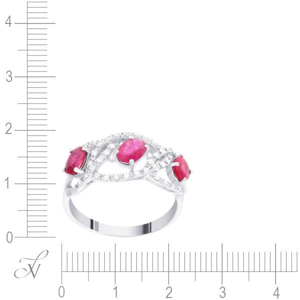 Кольцо из белого золота 585 пробы с рубинами облагороженными и бриллиантами