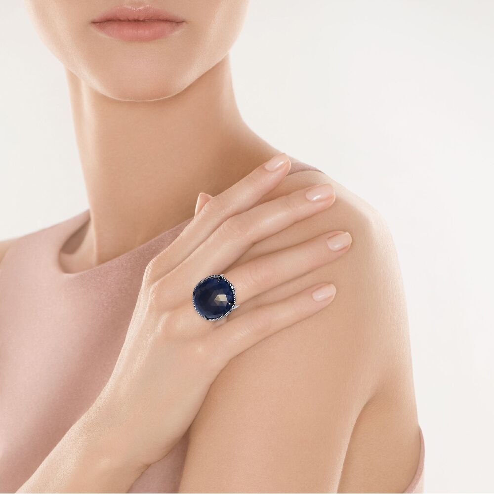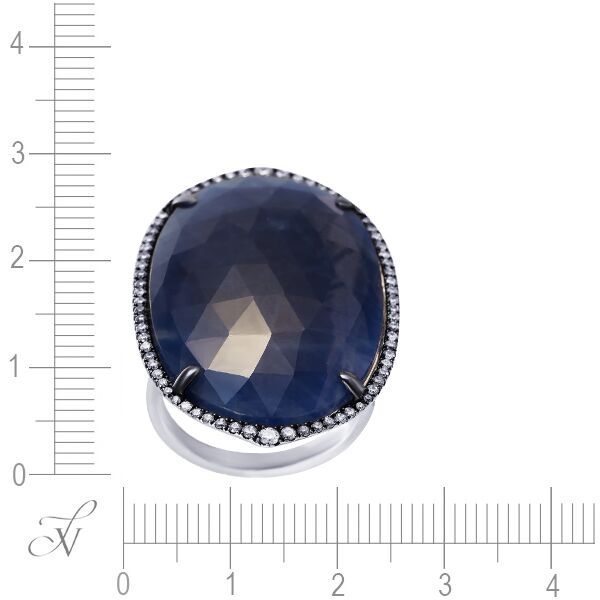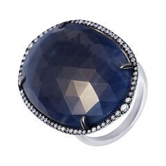 Кольцо из золота 585 пробы с корундом, бриллиантами и сапфирами (17,5) код. 52475