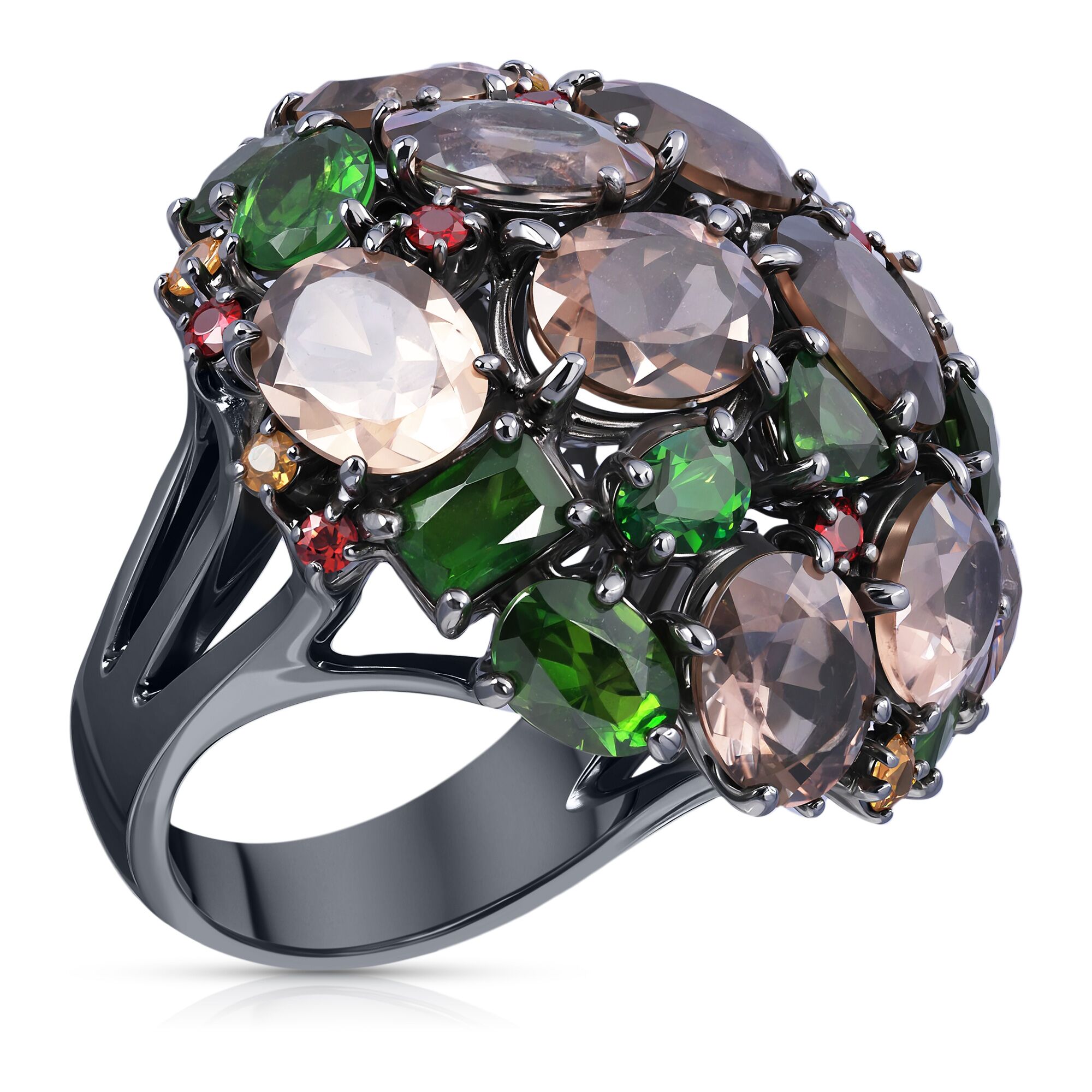 Кольцо из серебра 925 пробы с раухтопазами, сапфирами и хромдиопсидом (19,25)