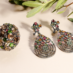 Серебро 925 пробы, раухтопаз, сапфир, хромдиопсид