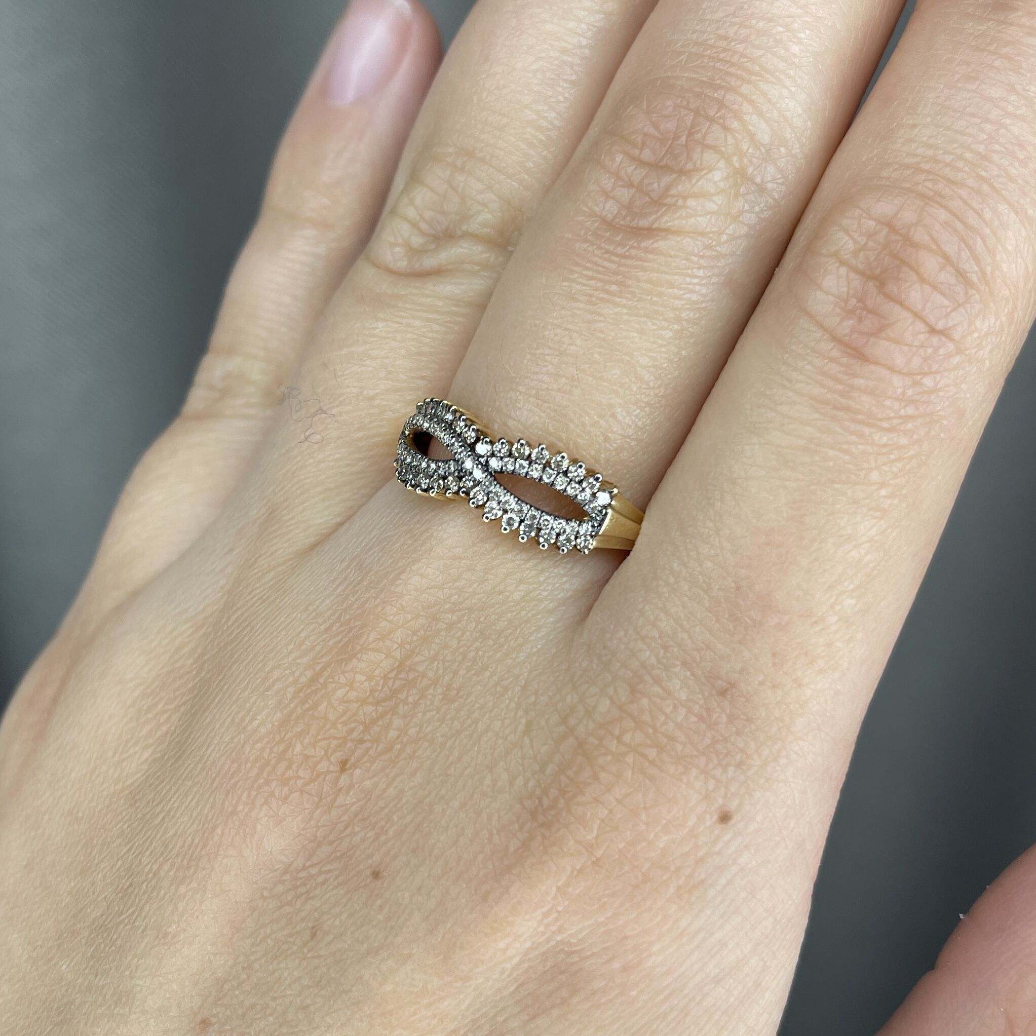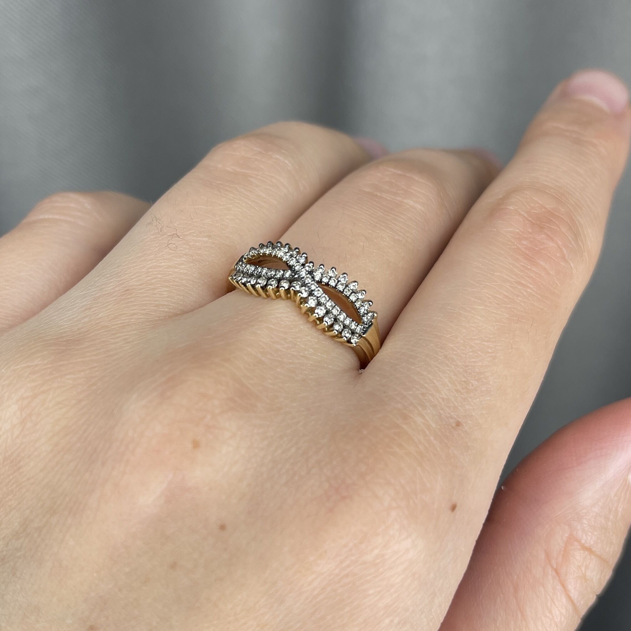 Золотое кольцо 585 пробы, камни - бриллиант коричневый огранка круглая 57 граней 7/6 - 69шт. вес 0.36 карата
