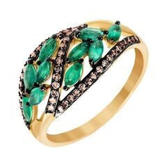 Золотое кольцо 585 пробы, камни - изумруд 3/г3 - 10шт. вес 0.75 карата, бриллиант коричневый огранка круглая 17 граней 3/3 - 47шт. вес 0.26 карата