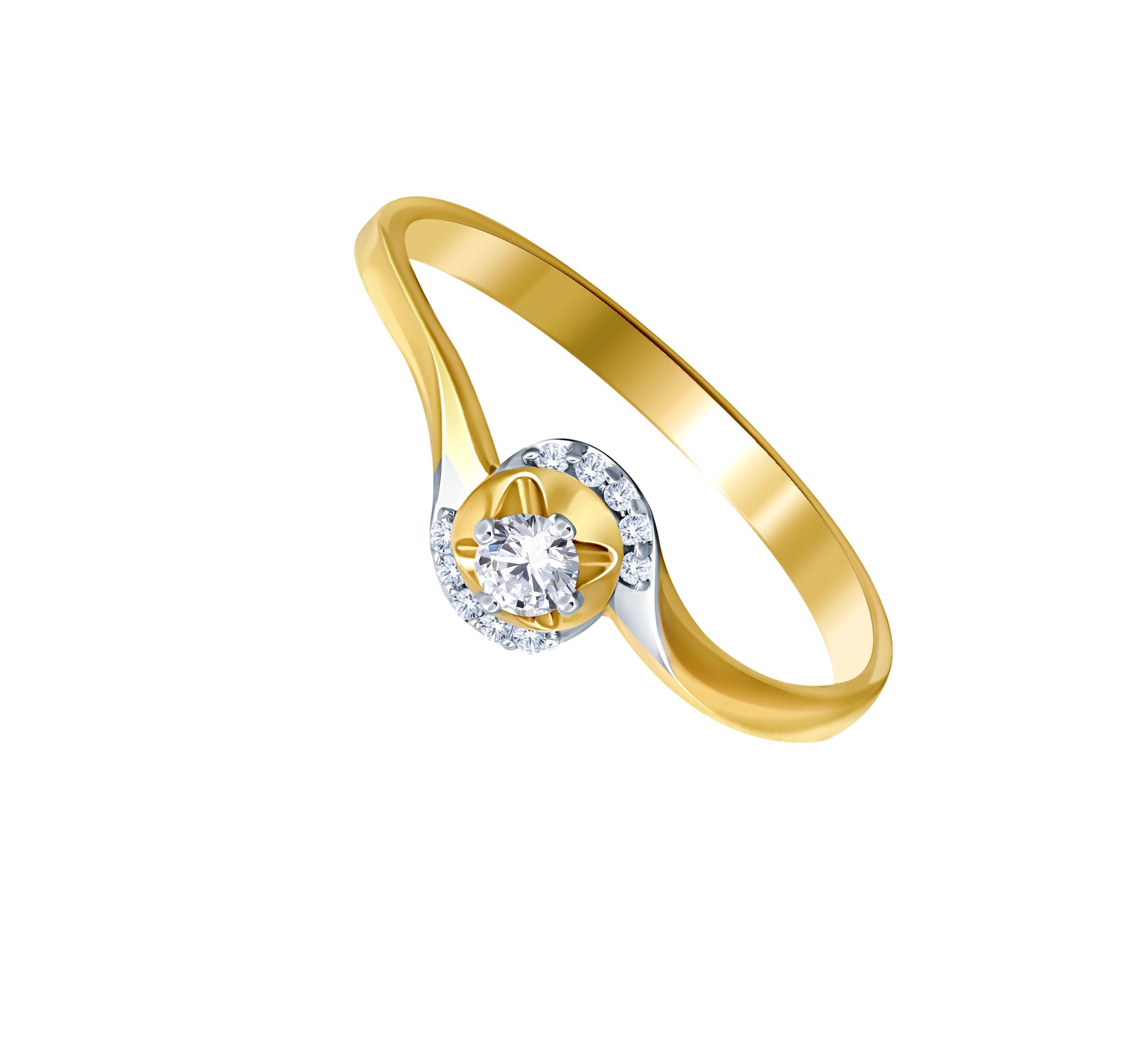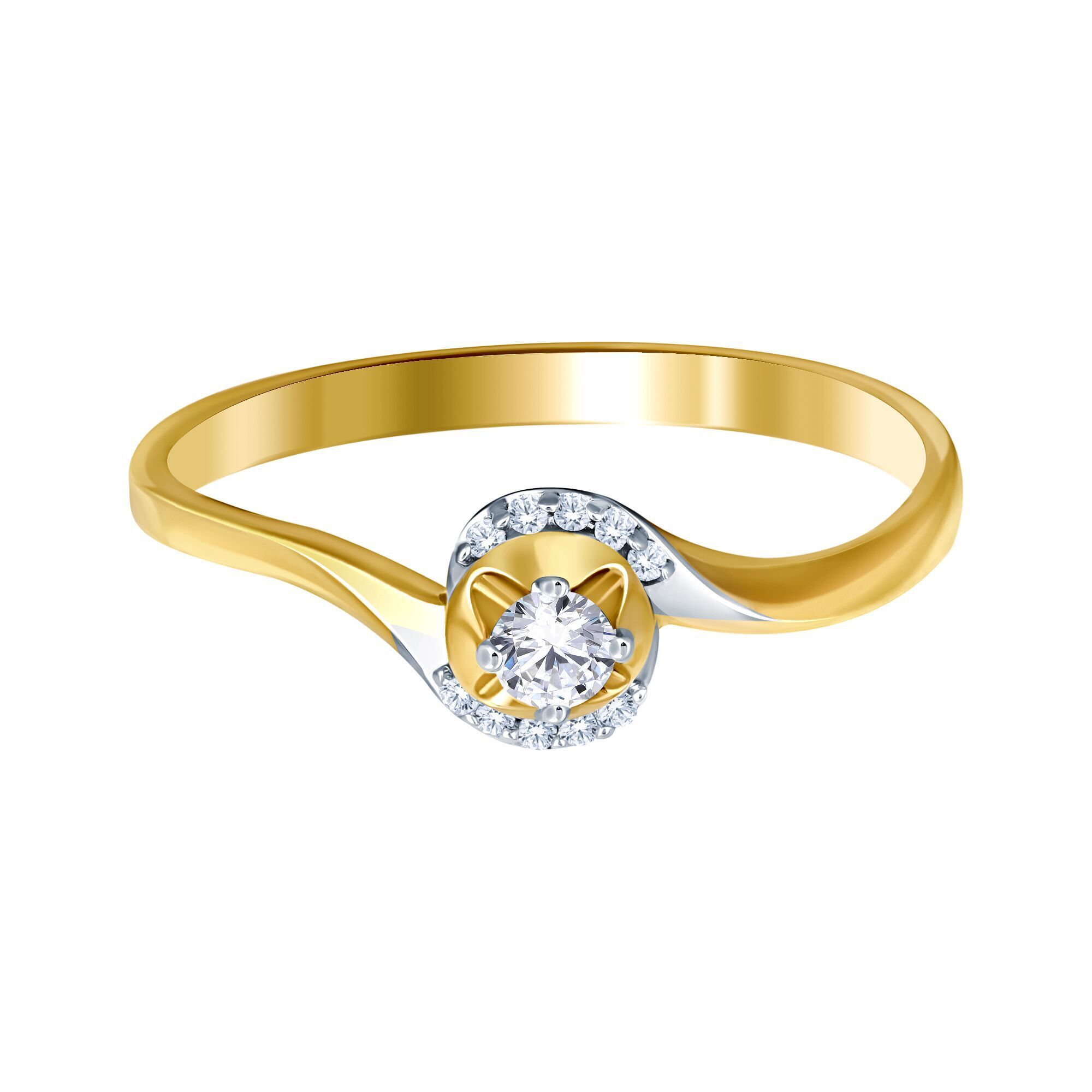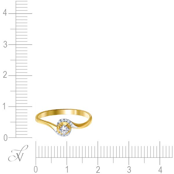 Золотое кольцо 750 пробы, камни - бриллиант огранка круглая 57 граней 4/6 - 1шт. вес 0.09 карата, бриллиант огранка круглая 17 граней 4/4 - 10шт. вес 0.04 карата