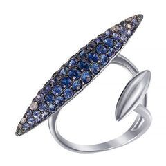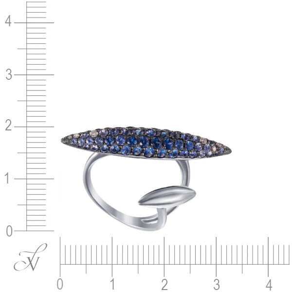 Кольцо из белого золота 585 пробы с сапфирами и бриллиантами (17,5) код. 64123